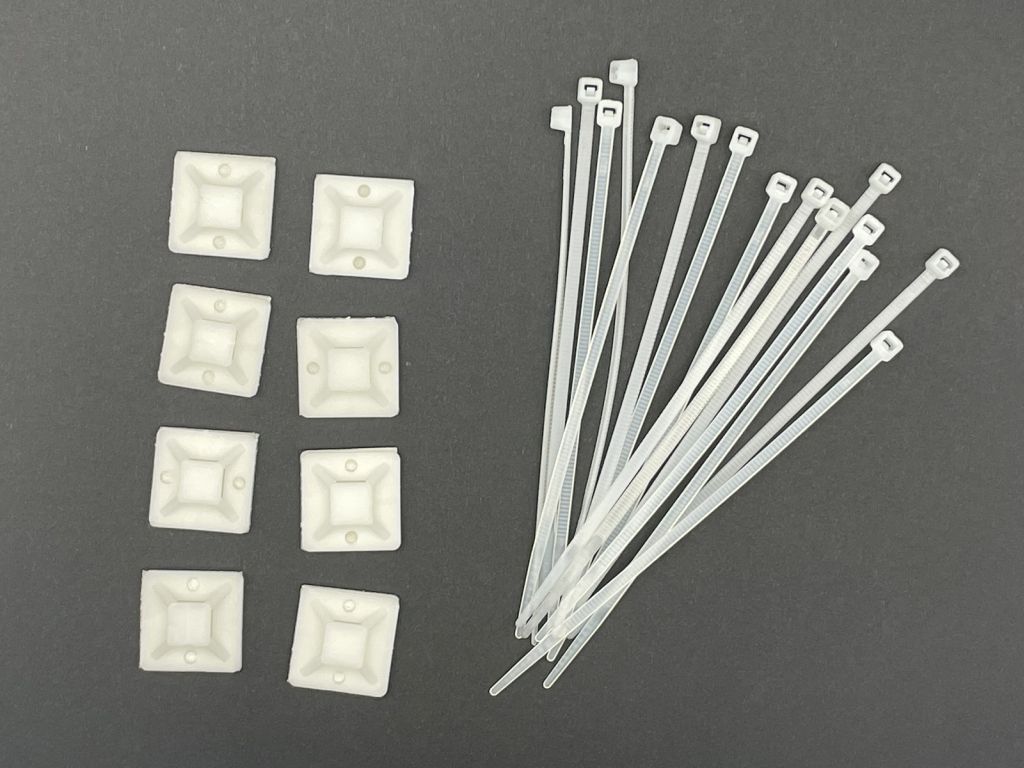 Montagematerial, 8 Klebesockel und 15 Kabelbinder