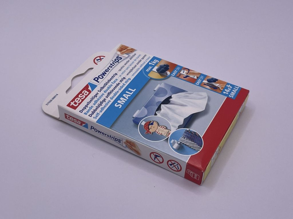 Eine Packung tesa Powerstrips® SMALL, 14 Klebestreifen, Haltekraft max. 1 kg